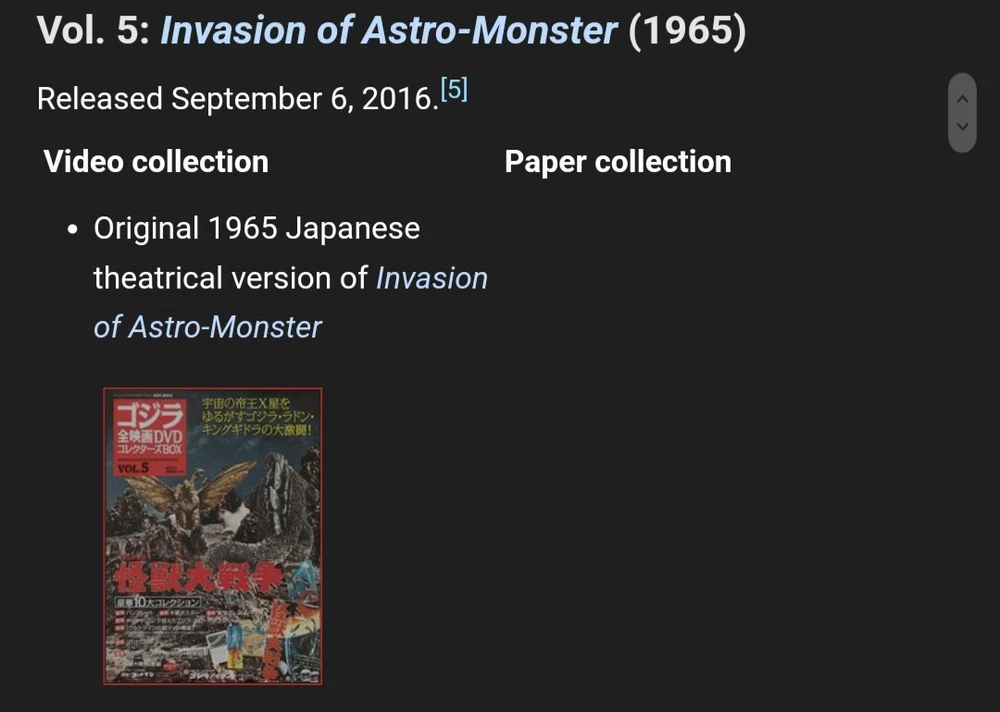 Godzilla All Movie Dvd JAPANESE Collectors Box Volume 5 NEW! All inserts are new and sealed! Vol. 5: Invasion of Astro-Monster (1965) This one is HARD TO FIND!! Especially in the states. Please ask ANY QUESTIONS PRIOR TO PURCHASING!! NO RETURNS. NO EXCEPTIONS. SHIPS OUT OF THE GOOD OL U.S.A.!! I ship with exceptional care and package as i would expect to receive!! Thanks for looking! :)