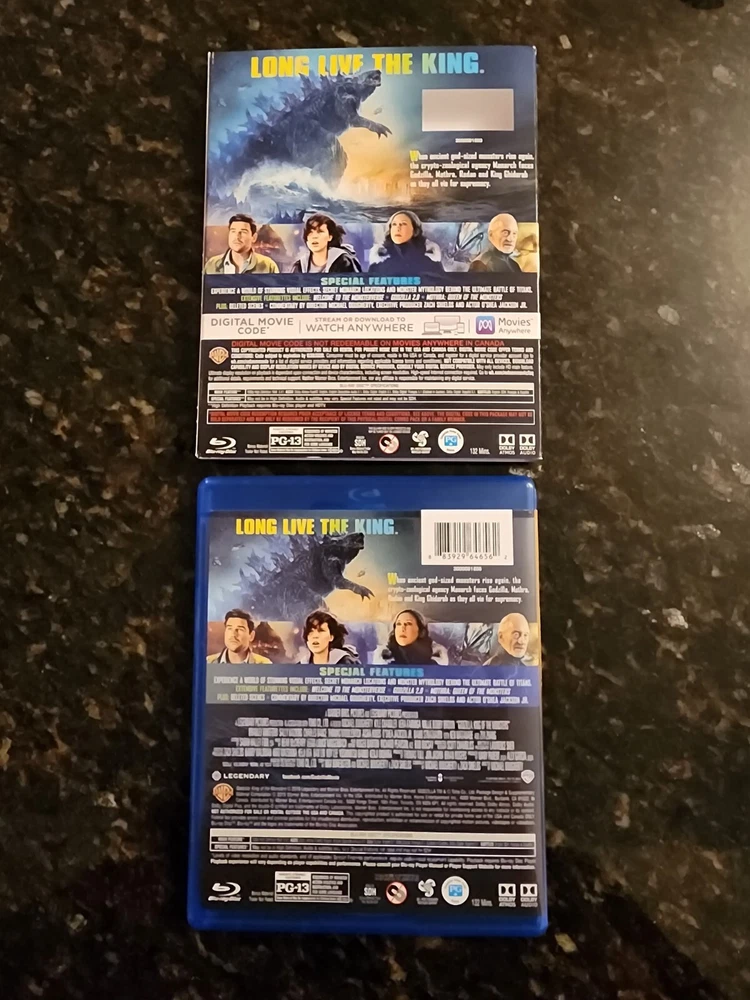 Godzilla and Godzilla King of the Monsters Blu-ray DVD combo's. Both like new. Not sure if digital copies have been used or not. Both have slip covers....