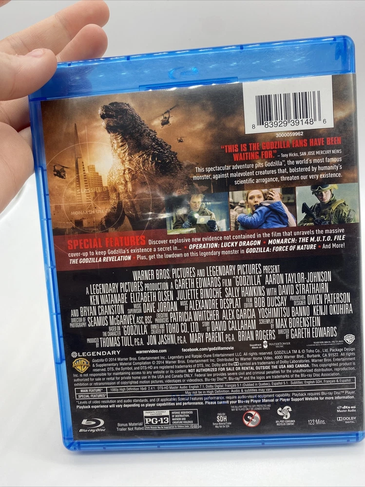 Godzilla BLU-RAY + DVD Bryan Cranston Elizabeth Olsen. Shipped next day . IN GREAT CONDITION...