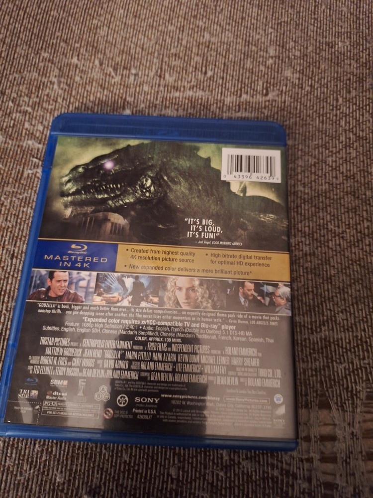 This Blu-ray is in perfect condition—played flawlessly with crisp picture and sound! The disc looks brand new, no scratches or issues. A must-have for any Godzilla fan, especially since it's the authentic 1998 edition. Great addition to my collection!