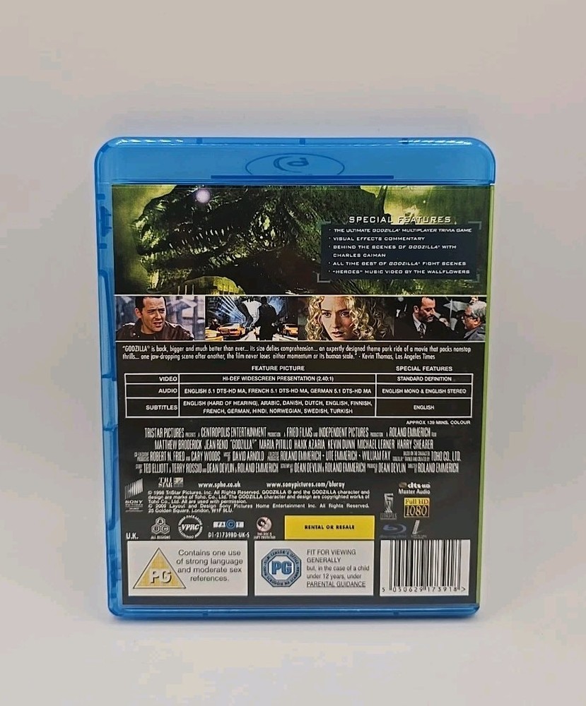 Get ready to experience the epic monster mayhem with "Godzilla" on Blu-Ray. Directed by Roland Emmerich and starring Matthew Broderick, this action-packed film is remastered in 4K for a crisp and clear viewing experience. Join the star-studded cast as they battle against the iconic creature in a thrilling adventure. With a runtime of 139 minutes and special features like widescreen and subtitles, this Blu-ray is a must-have for any fan of the franchise. Get your hands on this Region Free edition and immerse yourself in the world of Godzilla like never before.