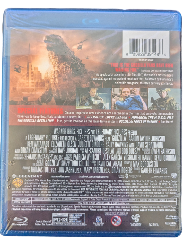 Godzilla (Blu-ray, 2014) Aaron Taylor-Johnson, Bryan Cranston & Elizabeth Olsen Description Godzilla (Blu-ray, 2014) Aaron Taylor-Johnson, Bryan Cranston & Elizabeth Olsen Shipping Free shipping on 3 or more items! Orders are shipped within one business day, estimated delivery time frames are outlined on listing. Our packaging materials are selected to safeguard the items during transit. Regular delivery services within Canada are now carbon-neutral. Authenticity Guarantee: We believe in responsible sourcing practices, working closely with trusted suppliers and manufacturers who share our commitment to quality. Our team carefully selects products from reputable sources, ensuring that they meet our stringent standards for quality. Returns After receiving the item, contact seller within 30 days after the buyer receives it. Planet BluRay - Media Entertainment at a Fair Value!