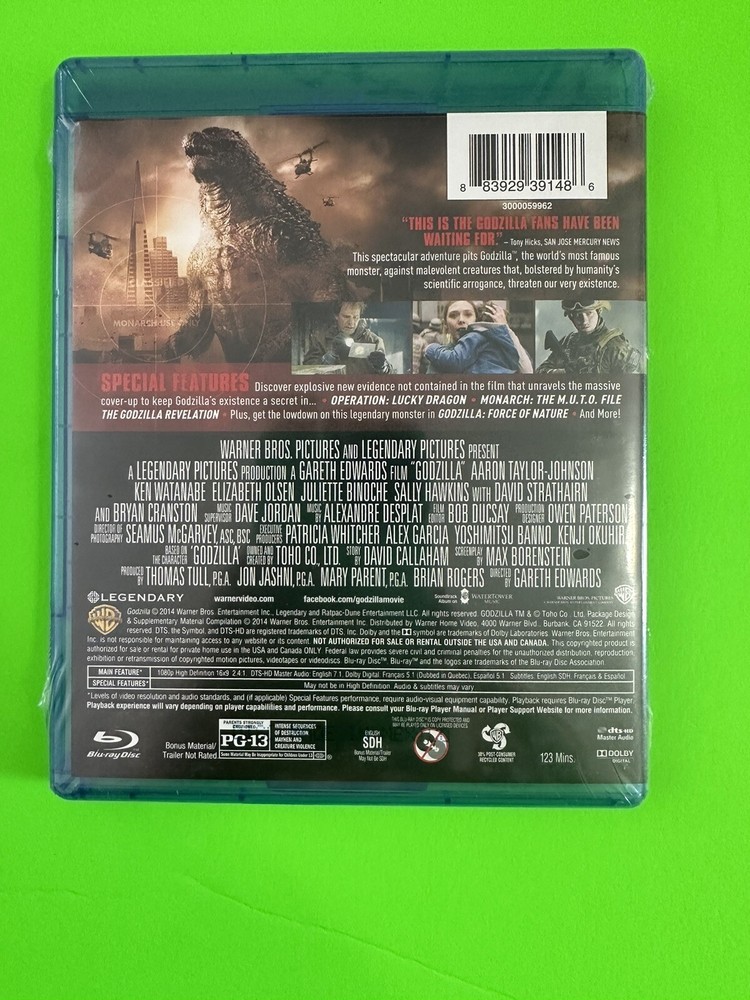 Absolutely love this Blu-ray! The 2014 Godzilla looks incredible in HD—every roar and explosion feels intense. The special effects hold up so well, and the sound design is immersive. Perfect for movie nights if you're into epic monster battles. Great addition to any collection, especially for fans of the franchise. No regrets buying this one!