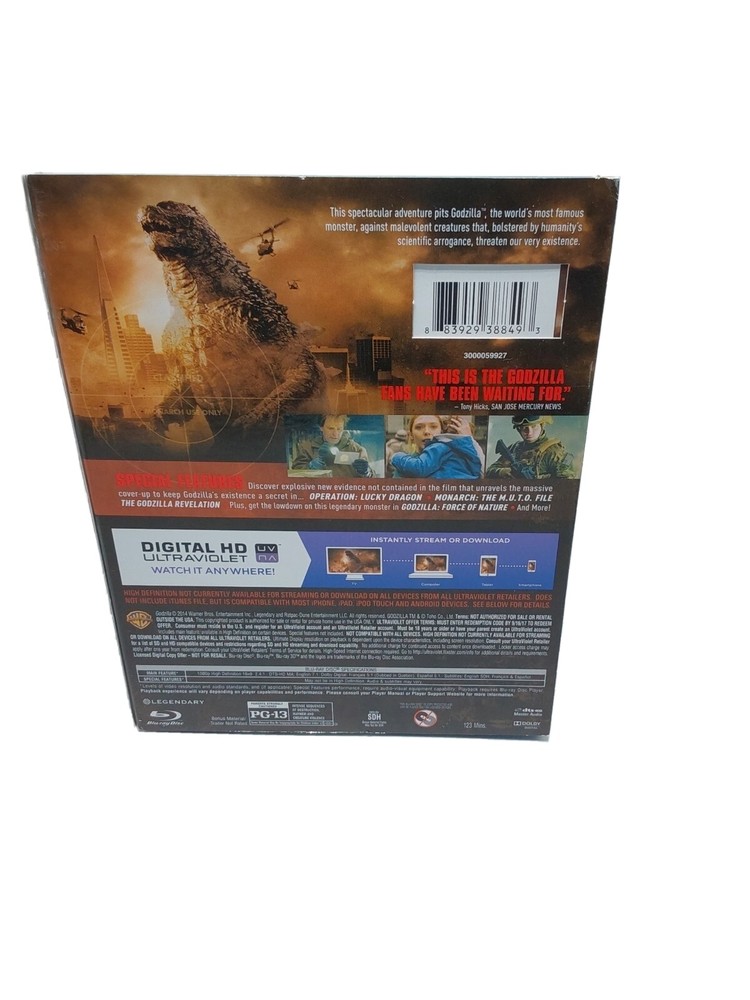 Godzilla (Blu-ray, 2014).Pre-owned. Blu-ray and dvd in excellent condition. Original case, discs,disc's, outer sleeve included. No digital license....