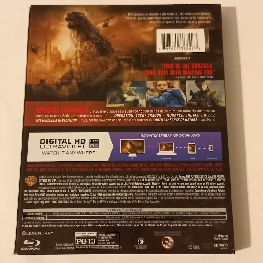 Godzilla 2014 Blu-ray DVD Digital with Sci-Fi Monster Bonus Content