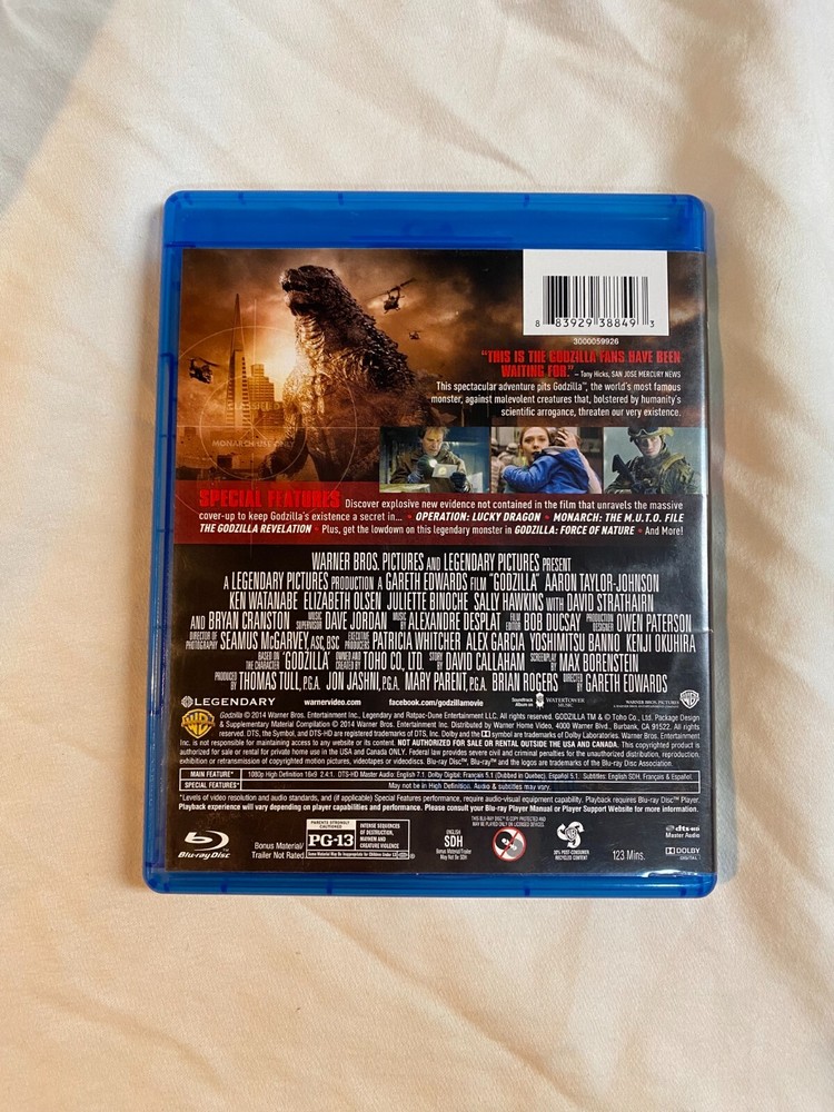 Godzilla (Blu-ray, 2014) All used blu-ray's, dvd's, and games have been inspected & tested to make sure they work properly... Please check out all my listings... I have tons of dvds, blu-rays, all types of toys, vintage toys, trading cards, comic books, audio books, sport items, Legos, Pokémon, Transformers, matchbox, lots of different types of figures, some crazy miscellaneous items you can not find anywhere else. The list goes on. Please asked if you have a questions? Also for combine offers! See pictures... Happy bidding!!!