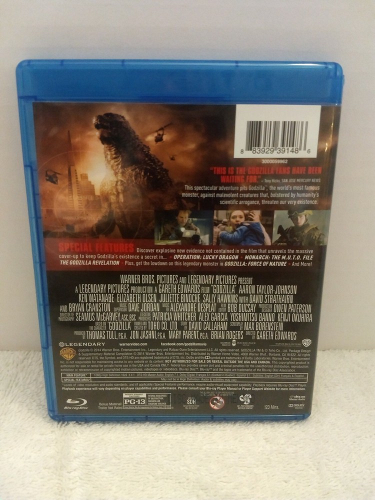 Godzilla (Blu-ray, 2014). Condition is "Like New". Great condition. Shipped with USPS Media Mail. If the item you are interested in, is a vintage collectible, please have reasonable expectations. In spite of my best intentions I may miss something.... ASK if you are unsure BEFORE you bid, I will be happy to help. 30 day return policy. Refunds are for purchase price only. Items must be returned in the same condition as they were received. Buyer is responsible for the cost of return shipping. If your items are damaged during transit please let us know immediately and photos of the damage item & box may be needed to process any applicable claims. Shipping charges are non-refundable. I maintain high standards of excellence and strive for 100% customer satisfaction! Positive Feedback is very important to me. Please contact me first before you leave Neutral or Negative Feedback or open eBay disputes. I promise I will do my best to solve the problem, thanks!