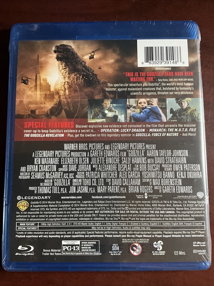Experience the thrill of the latest Godzilla movie in stunning high definition with this Blu-ray edition. This standard edition features English language and a PG-13 rating, making it perfect for fans of horror and science fiction genres. The disc is compatible with Blu-ray players and is a great addition to any movie collection. Get ready to witness the incredible action-packed scenes and stunning visuals that have made Godzilla a household name. This edition is a must-have for any movie enthusiast and is produced by Warner Home Video. Don't miss out on the chance to own this amazing piece of cinematic art. You are bidding on a new Blu Ray.