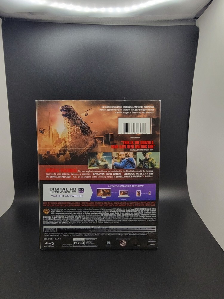 The product is the Blu-ray edition of the 2014 movie "Godzilla." Directed by Gareth Edwards, this science fiction film falls under the sub-genre of horror and carries a PG-13 rating. It features English language audio with subtitle options in English, French, and Spanish. Released by Warner Home Video, this version of "Godzilla" offers viewers the opportunity to enjoy the thrilling monster movie in high definition quality on Blu-ray format.