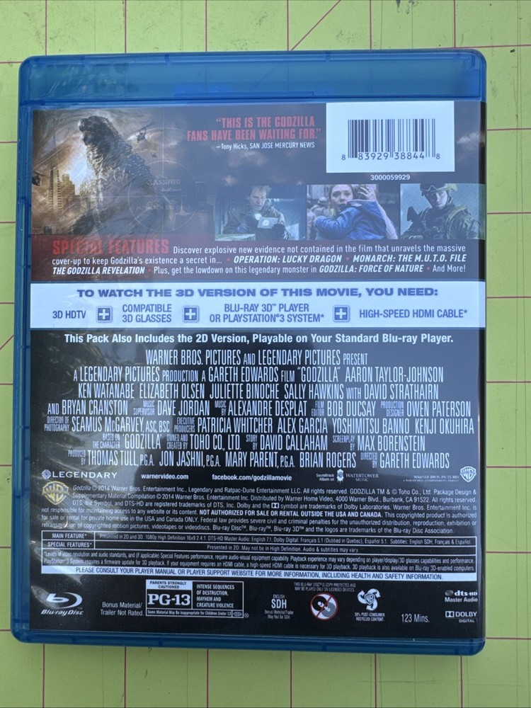 Godzilla Blu-ray,Blu-ray 3D, dvd. With lenticular slipcover. No digital copy.