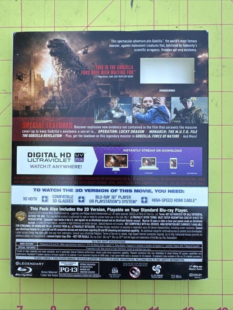 Godzilla Blu-ray,Blu-ray 3D, dvd. With lenticular slipcover. No digital copy....
