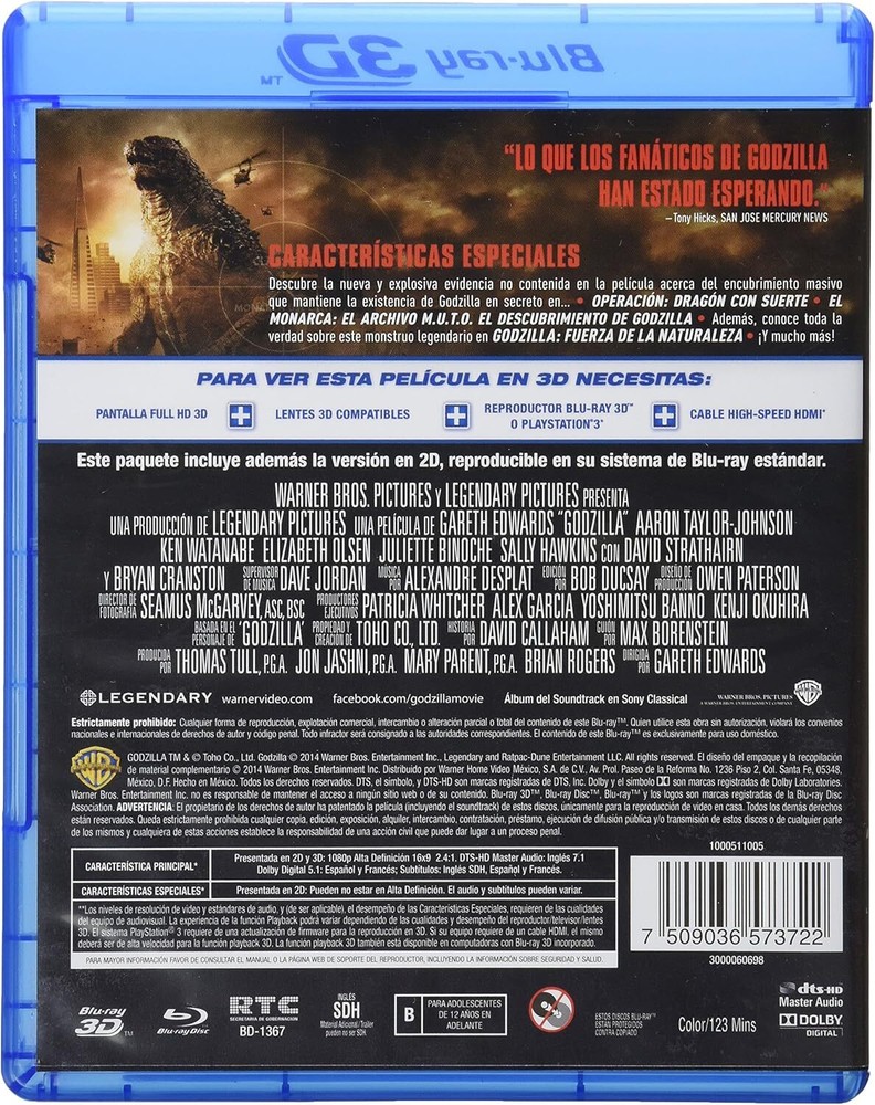 Godzilla [Blu-ray 3D + Blu-ray] (Spanish & English Audio Options) Ships FREE to all U.S. Destinations 24 Hour Ship Time Monday - Friday 30 Days for Refunds & Replacements Additional Details Condition: New Media Type: Blu-ray Region: 1 (USA and Canada) UPC: 7509036573722 Studio: Warner Format: Widescreen Languages: English, Spanish No. of Discs: 2 Run Time: 123 min. ABOUT US PAYMENT SHIPPING RETURNS FEEDBACK CONTACT US ABOUT US Mila Technologies has been a leading distributor of DVD and Blu-ray entertainment since 1998. Our online business was established on eBay.com in early 2010 and has been growing ever since. We are excited to bring our exclusive deals to the eBay market and our #1 goal is serving our customers with the utmost level of professionalism. Our quality product line speaks for itself, and as always we only carry authentic media direct from the studios. We look forward to continuing our excellent record track here on eBay. If you have any questions, please do not hesitate to contact us via eBay's internal messaging system. PAYMENT PayPal is a service that enables you to pay, send money, and accept payments without revealing your financial details. PayPal allows you to make payments using a variety of methods including: PayPal Balance, PayPal Credit, Bank Account, Credit Card, PayPal Cards, and Debit Card. If you are experiencing issues using this payment service, please let us know and we will do our best to assist you. SHIPPING Over 99% of our orders will ship from our warehouse in 1 business day (Monday - Friday). A tracking number will be sent via email after your order has successfully shipped. Please allow an additional day of processing during Federal Holiday closings. If you do not receive confirmation of shipment via email, please contact us for a tracking number. 'Free Shipping' offers, when applicable, only apply to U.S. destinations (includes PR, AK, HI, and APO). RETURNS Returns for refund, exchange, or store credit are accepted within 30 days of receipt*. Our hassle-free return process is as "Easy as 1-2-3" Contact us and provide your Full Name, Item Number, and Reason for return. You will be instructed where to send back your order. Please follow the instructions outlined in your response email to get your return processed fast and efficiently. We will notify you when your return is received. In addition to selecting to receive a refund, you will have the option of selecting a replacement of the original item ordered, choosing another product from our store, or receive store credit for your future purchase. * The delivery date posted on the tracking number will be used to determine return eligibility. FEEDBACK We always encourage customers to contact us if there is an issue with your order. Negative Feedback should always be a last resort. Our sales representatives are available throughout the week to assist you with any order related issues. Please note, that currently our eBay account is automatically programmed to leave positive feedback when buyers leave it for us. This lets us know that the buyer is satisfied with their purchase and that our transaction has been a mutual success. CONTACT US If you have any questions about this listing, please contact us using eBay's internal messaging system. Please remember to include the eBay item number in the subject line or body of your email inquiry if applicable. Thank you for your business here on eBay and we look forward to doing business with you. Mila Technologies Inc. 43 Glen Cove Rd Unit B Ste 195 Greenvale, NY 11548