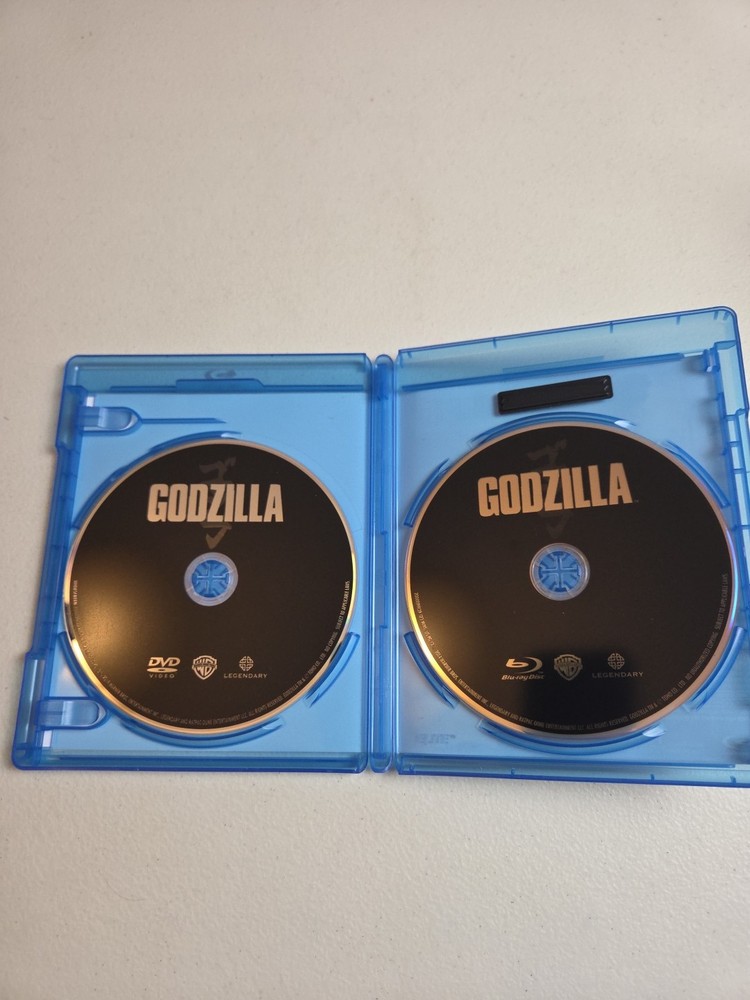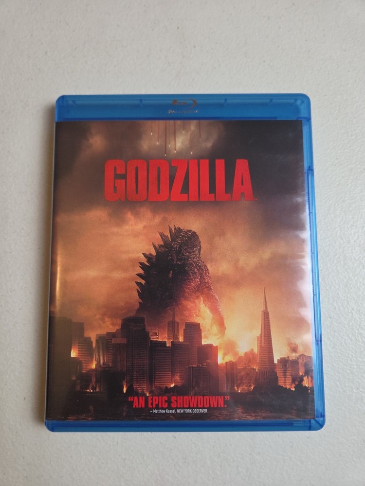 This is the movie "Godzilla" on Blu-ray, released in 2014 and directed by Gareth Edwards. The film is in English language with subtitle options in English, French, and Spanish. It is rated PG-13 and falls under the science fiction genre. The Blu-ray is presented in a Blu-ray case and comes with free shipping.