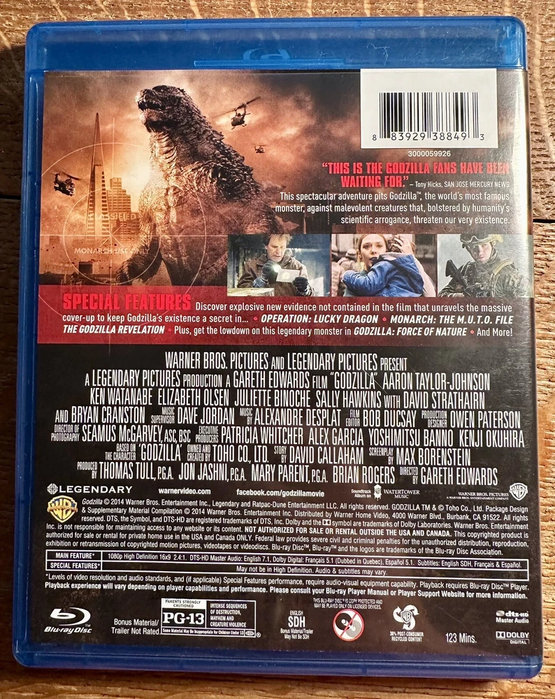 Immerse yourself in the world of Godzilla with this ultimate Blu-ray bundle. This set includes the 2014 blockbuster movie on Blu-ray, DVD, and Digital HD, making it the perfect addition to any movie lover's collection. Directed by Gareth Edwards, this science fiction horror film is rated PG-13 and features English, French, and Spanish subtitles. The Godzilla franchise is known for its iconic portrayal of the titular monster, and this version is no exception. With stunning visuals and a thrilling plot, this movie is a must-see for fans of the genre. Produced by Warner Home Video, this set is a great gift for any movie enthusiast.
