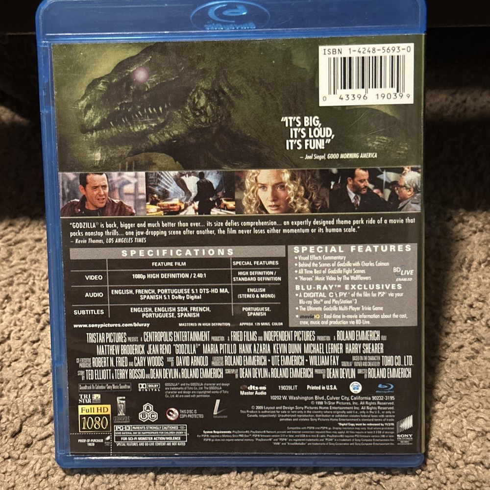 This Blu-ray Disc release of "Godzilla" from 2009 features an all-star cast including Jean Reno, Matthew Broderick, and Maria Pitillo. Directed by Roland Emmerich, this Sci-Fi & Fantasy film is rated PG-13 and promises to be a thrilling watch. With the advent of modern technology, this Blu-ray Disc provides an immersive viewing experience with high-definition graphics and sound. The movie's storyline revolves around the adventures of a journalist, a scientist, and a special forces soldier as they battle to save the world from a monster the size of a city.