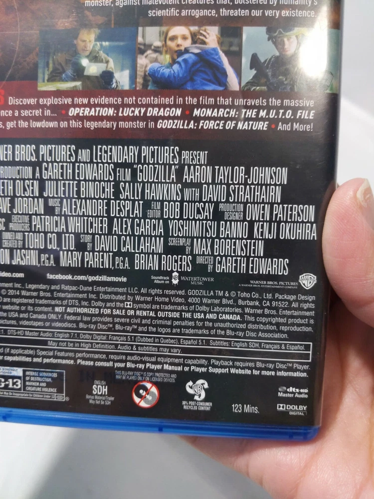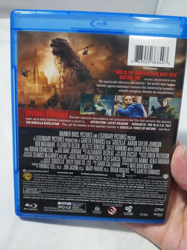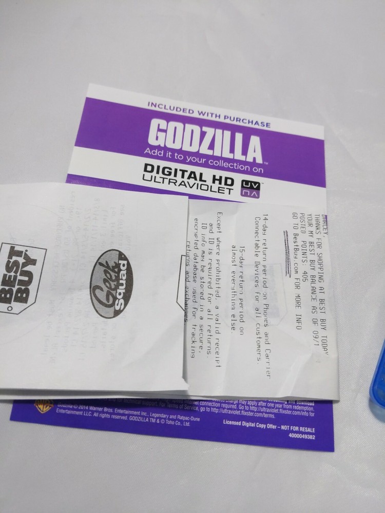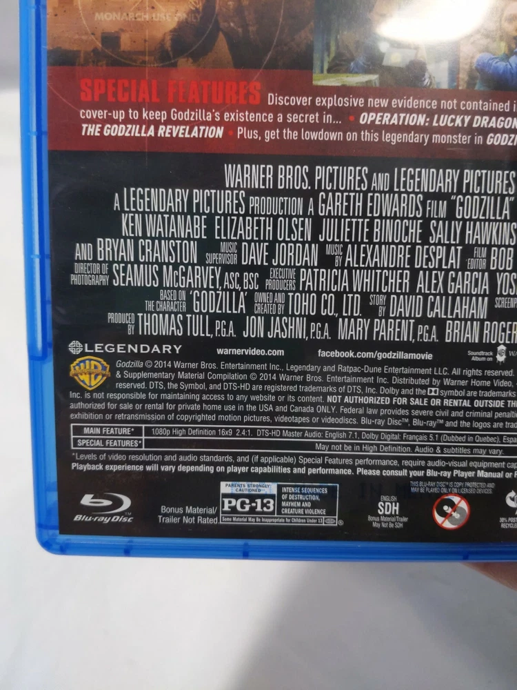 Godzilla (Blu-ray Disc, 2014, 2-Disc Set). Condition is "Like New". Both discs have one or two very small light scratches. Does not effect play. Smoke free home. See pictures for more details as they are part of the description. Although digital code was never used, it is expired.