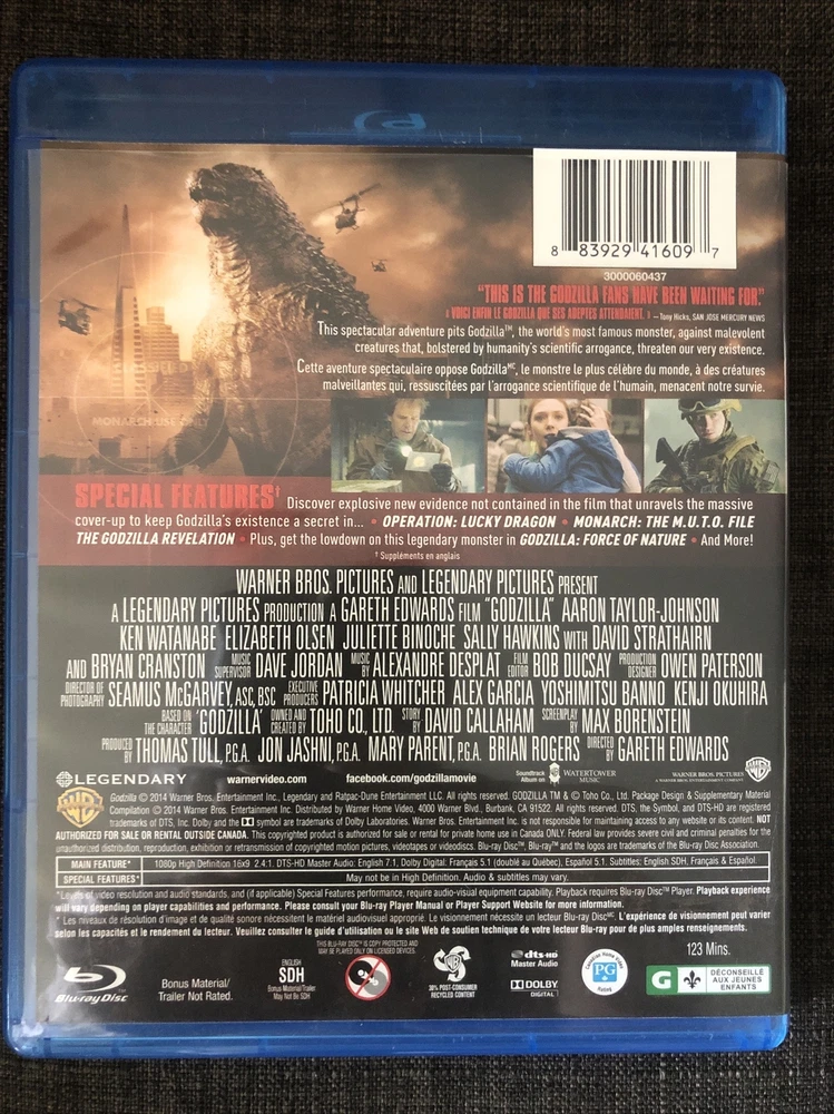 Godzilla (Blu-ray Disc/DVD Combo - 2014, 2-Disc Set, Canadian) in Like New condition.