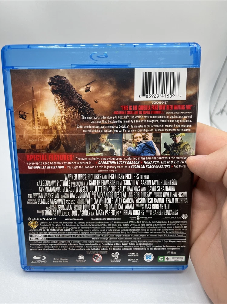 Get ready to experience the epic battle of Godzilla in stunning high-definition with this Blu-ray Disc/DVD combo set from 2014. Directed by Gareth Edwards and starring Elizabeth Olson, this sci-fi and fantasy film is sure to thrill viewers with its creatures and monsters. The 2-disc set includes a widescreen format with English, French, and Spanish subtitles for an immersive viewing experience. Perfect for fans of the Godzilla franchise, this standard edition release from Warner Bros is a must-have addition to any movie collection.