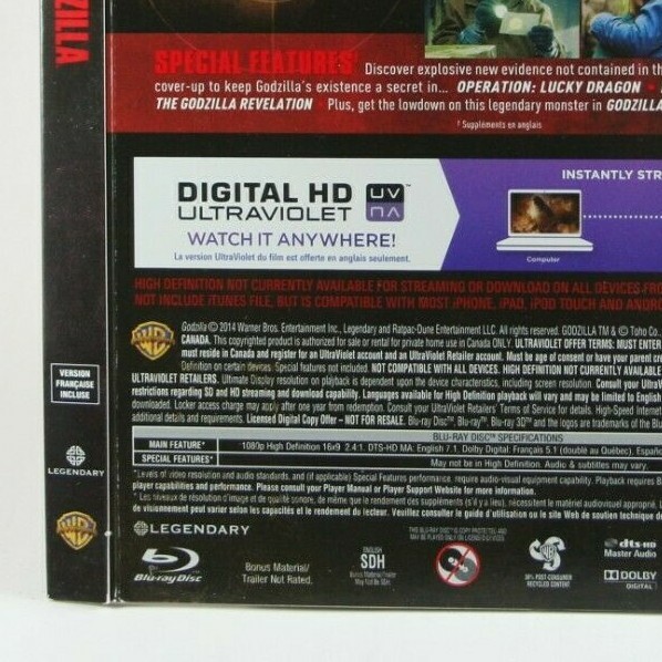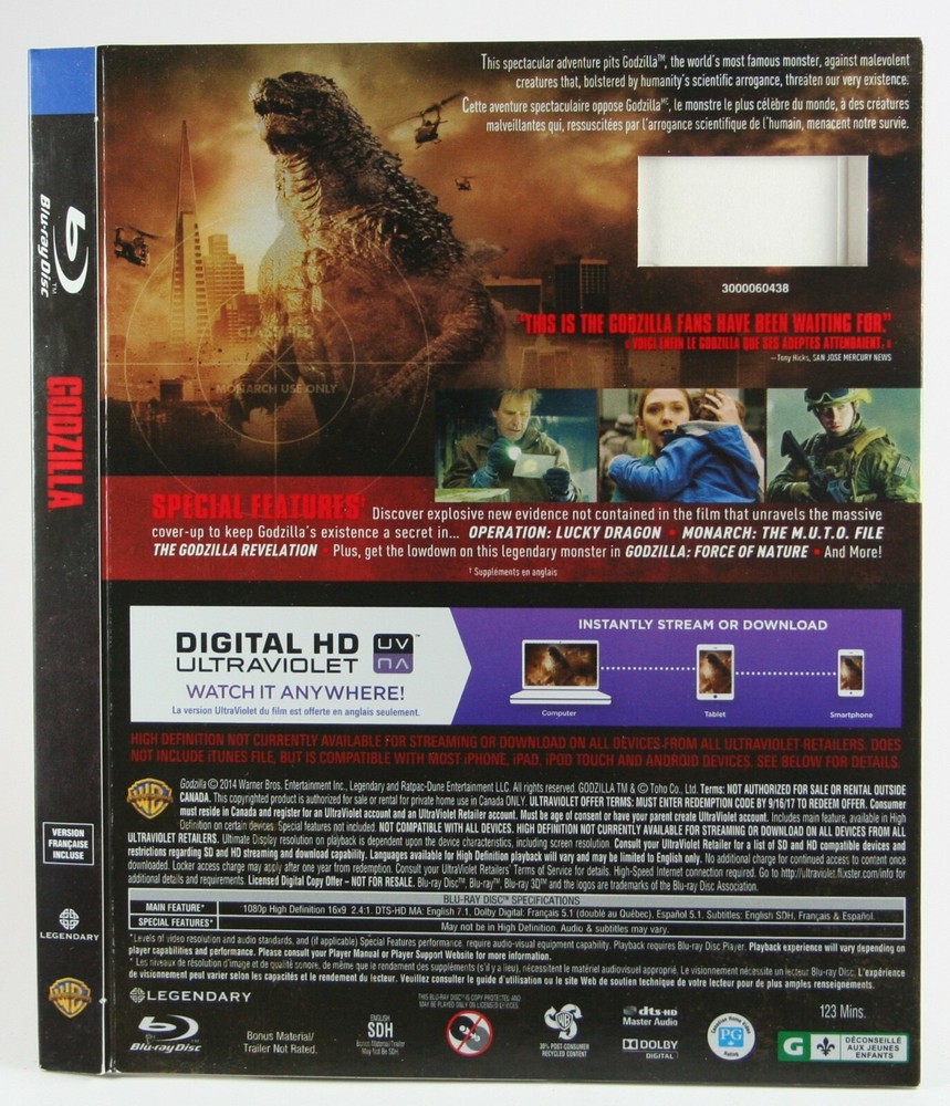 Godzilla Blu-ray Blu-ray + DVD Warner Bros. | 2014 | 123 min | Rated PG-13 | Sep 16, 2014 Canadian Release [SLIPCOVER ONLY] Note: this is for the SLIPCOVER ONLY. No Bluray / DVD's here... just the Slipcover / O-Card. Slipcover will be shipped flat, with cardboard and will be bagged. Please check the pictures, this is the exact item you will be getting. box532 shipping policy United States: To ensure timely delivery for all buyers in the United States, all parcels will be shipped with a tracking number from New York State. The shipping service will depend on the item, weight and dimensions, and it will provide tracking information for all packages, making it easier for you to track your delivery. The estimated delivery time for domestic orders is 3-7 business days. Canada: All Canadian orders will be shipped from Canada, eliminating any potential duty charges. I use Canada Post as the shipping carrier, offering reliable and efficient service, with an estimated delivery time between 3-12 days. Rest of the World: I ship overseas packages via International Airmail with tracking for both yours and my protection. The estimated delivery time for international orders is 10-45 days via International Airmail with tracking. Payment & Feedback: Pease make payment within 24 hours to avoid any delays in shipping your package. I work on a very tight shipping schedule and late payment only causes delays at your end. Feedback is always appreciated and I will return the favor. box532