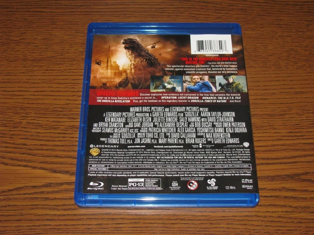 Godzilla (Blu-ray/DVD, 2014, 2-Disc Set, Digital Copy) This Blu-Ray is Brand New - Still in Original Retail Shrink Wrapping. I cut a slit on one of the movies to reseat loose discs. Digital Copy is included. Due to rising shipping costs from the post office, the default Shipping Method is Media Mail (2 - 9 days) which is the most economical. If you want it faster, please select USPS First Class for $1.00. Godzilla (Blu-ray/DVD, 2014, 2-Disc Set, Digital Copy) This Blu-ray is in excellent condition. DVD Disc may have minor scratches. No Digital Copy Included. Track Page Views With Auctiva's Counter