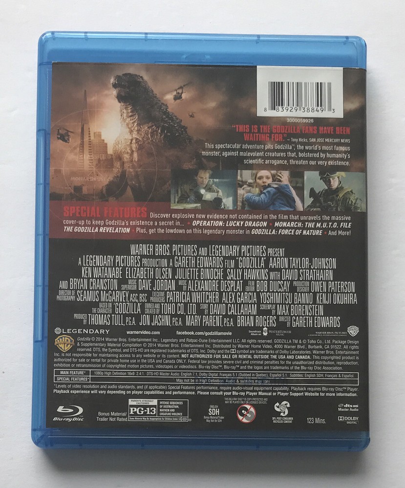 This Blu-ray/DVD set is a must-have for any Godzilla fan! The 2014 reboot looks stunning in high-def, and the 2-disc set includes great bonus features. The slipcover is a nice touch, and the seller packed it securely—arrived in perfect condition. Highly recommend for collectors or anyone who loves epic monster action!