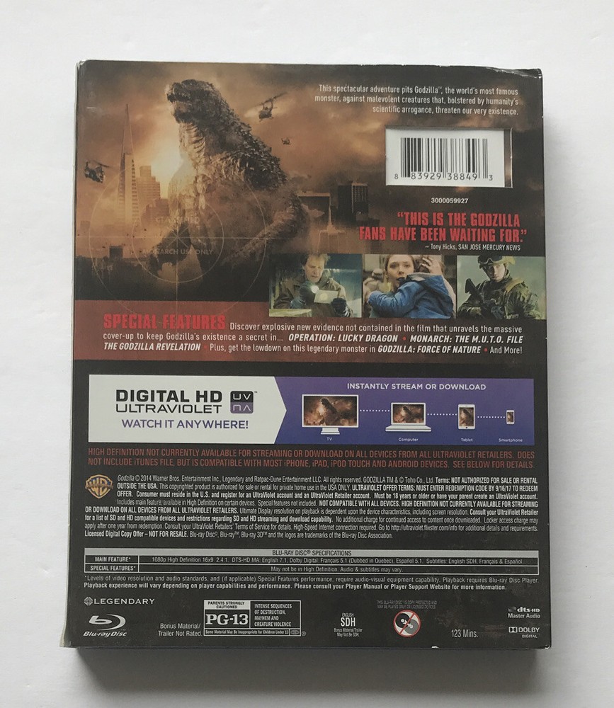 Godzilla (Blu-ray/DVD, 2014, 2-Disc Set) With Slipcover Item is used in like new condition. Please check photos or message for questions on condition. All items are shipped with bubble wrap for protection. Check out my other items in my store.