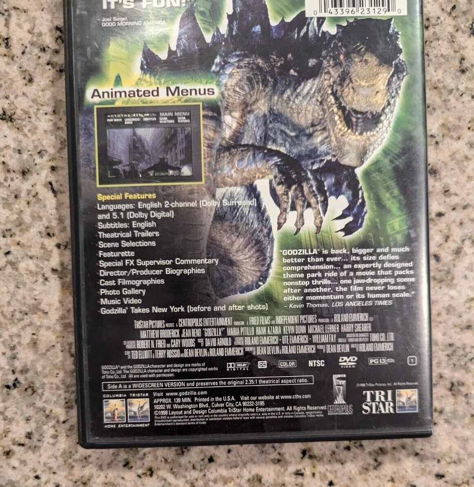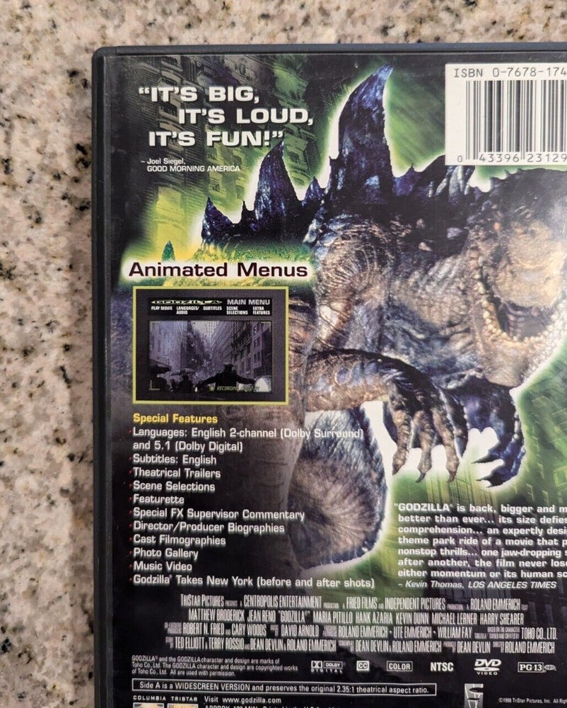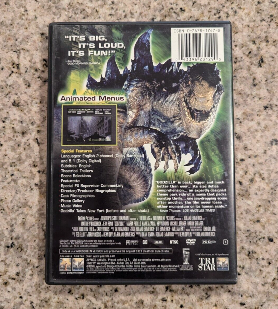 Godzilla (DVD, 1998, Deluxe Widescreen) Size does Matter - With Insert - VG Includes Insert...