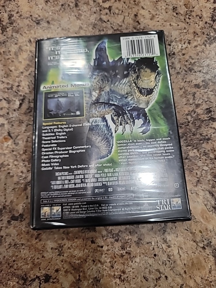 The product is a DVD of the movie "Godzilla" from 1998, starring Matthew Broderick. It is new and sealed, ready for viewing....