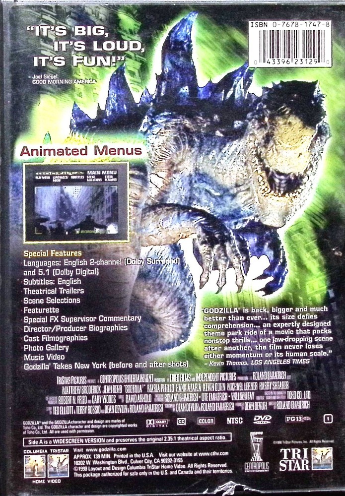 Get ready to experience the ultimate horror-science fiction film with Godzilla on DVD. Directed by Roland Emmerich and released in 1998 by Sony Pictures, this PG-13 rated movie is a must-watch for fans of the genre. The movie features a thrilling plot and stunning visuals that will keep you on the edge of your seat.This DVD version of Godzilla is perfect for collectors and fans alike. With its crisp format and convenient playback, you can enjoy the movie in the comfort of your own home. Don't miss out on this classic piece of cinema history.