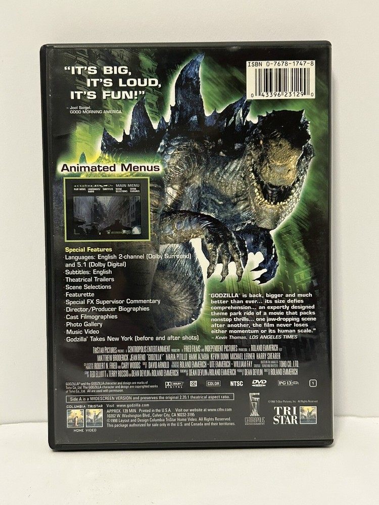 Godzilla DVD, 1998. Condition is Very Good. Shipped with USPS Media Mail.