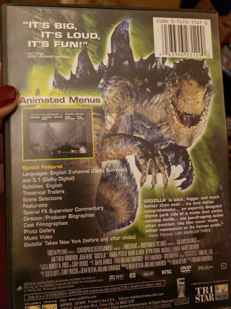 The product is the DVD release of the 1998 film "Godzilla," directed by Roland Emmerich and produced by Sony Pictures. This science fiction movie falls under the sub-genre of horror and carries a PG-13 rating. With a focus on the iconic monster Godzilla, this film offers a thrilling and visually captivating experience for fans of science fiction and creature features. Perfect for collectors or enthusiasts of monster movies, this DVD provides a chance to revisit or discover this modern take on the classic Godzilla tale.