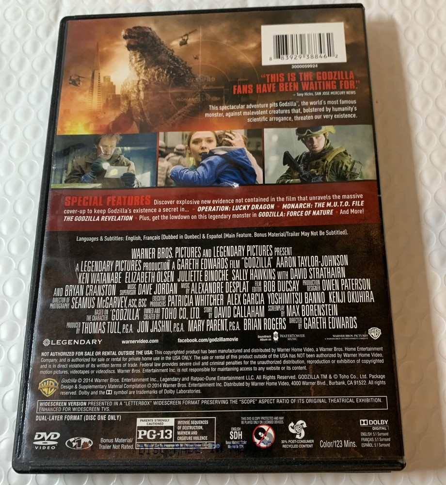 Godzilla (DVD, 2014, 2-Disc Set, Includes Digital Copy UltraViolet). Shipped with USPS First Class.
