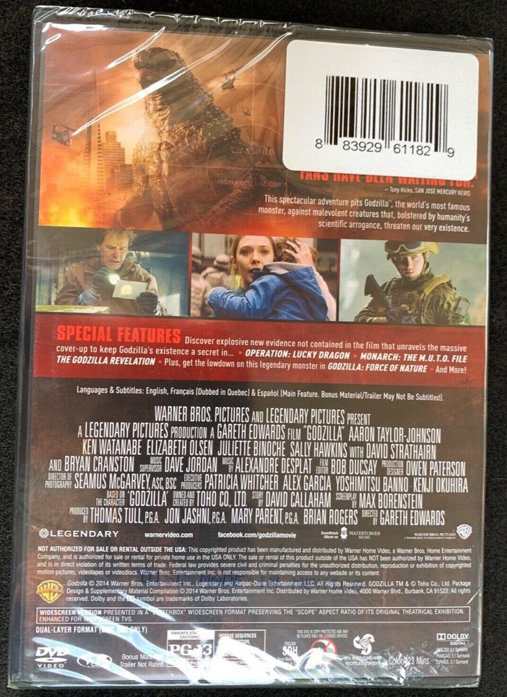Godzilla DVD, 2014 2-Disc Special Edition Promo -- A SciFi Collectible Classic. Tons of Special Features!