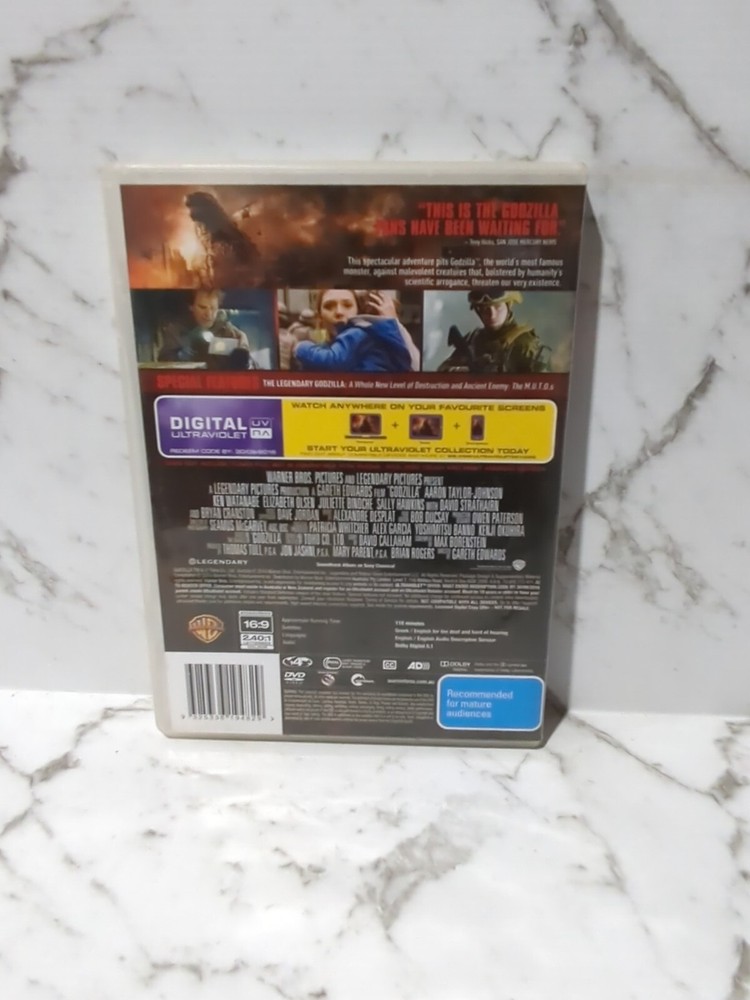 Godzilla | UV (DVD, 2014) Region 4. All movies are sent with tracked post All non-sealed discs of any type are cleaned using commercial grade buffing and cleaning equipment to ensure minimal to no scratches and best possible playback. Dynamic Marketing is a Liquidation warehouse. these were not previously our personal items, so we do not have detailed knowledge on each dvd's specifics. Region codes are different across the world, please check your local region for compatibility or ensure you have a region free player.