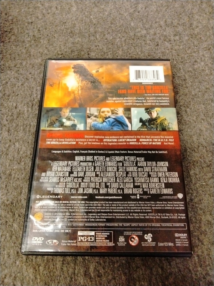Godzilla (DVD, 2014). Pictures are of the actual item you will receive. We do the best we can to keep our buyers informed. If item is new unused it will be stated, but most of our items come from flea markets, yard sales, estate sales, and storage lockers. Feel free to ask any questions you may have. Please check out our eBay store for more new and used items. We combine shipping when more than 1 item is purchased. Thanks for looking. If for some reason there is a problem or issue please contact us first. We do the best we can to make sure our buyers are satisfied, but we are human and can make mistakes. If a problem does arise please contact us and we will do the best we can to make it right