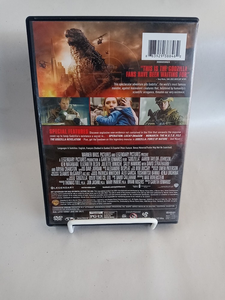 This DVD features the 2014 sci-fi monster film, Godzilla, directed by Gareth Edwards and starring an ensemble cast. The movie is rated PG-13 and includes English, French, and Spanish subtitles. Released by Warner Home Video, the DVD format is compatible with most players. The story follows the giant monster's return to wreak havoc on humanity and the efforts to stop it. This DVD is a must-have for fans of the genre and those who enjoy action-packed films. Dvd/Cds rated very good are based on the disc being nearly scratch free up to pristine condition. Any cracked cases will be replace with a non cracked case before shipping Pictures are of the actual item you will receive. We do the best we can to keep our buyers informed. If item is new unused it will be stated, but most of our items come from flea markets, yard sales, estate sales, and storage lockers. Feel free to ask any questions you may have. Please check out our eBay store for more new and used items. We combine shipping when more than 1 item is purchased. Thanks for looking.