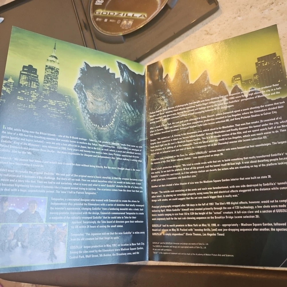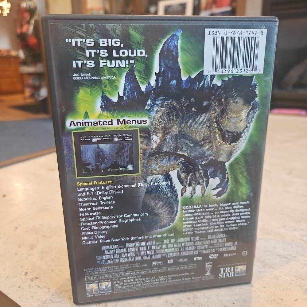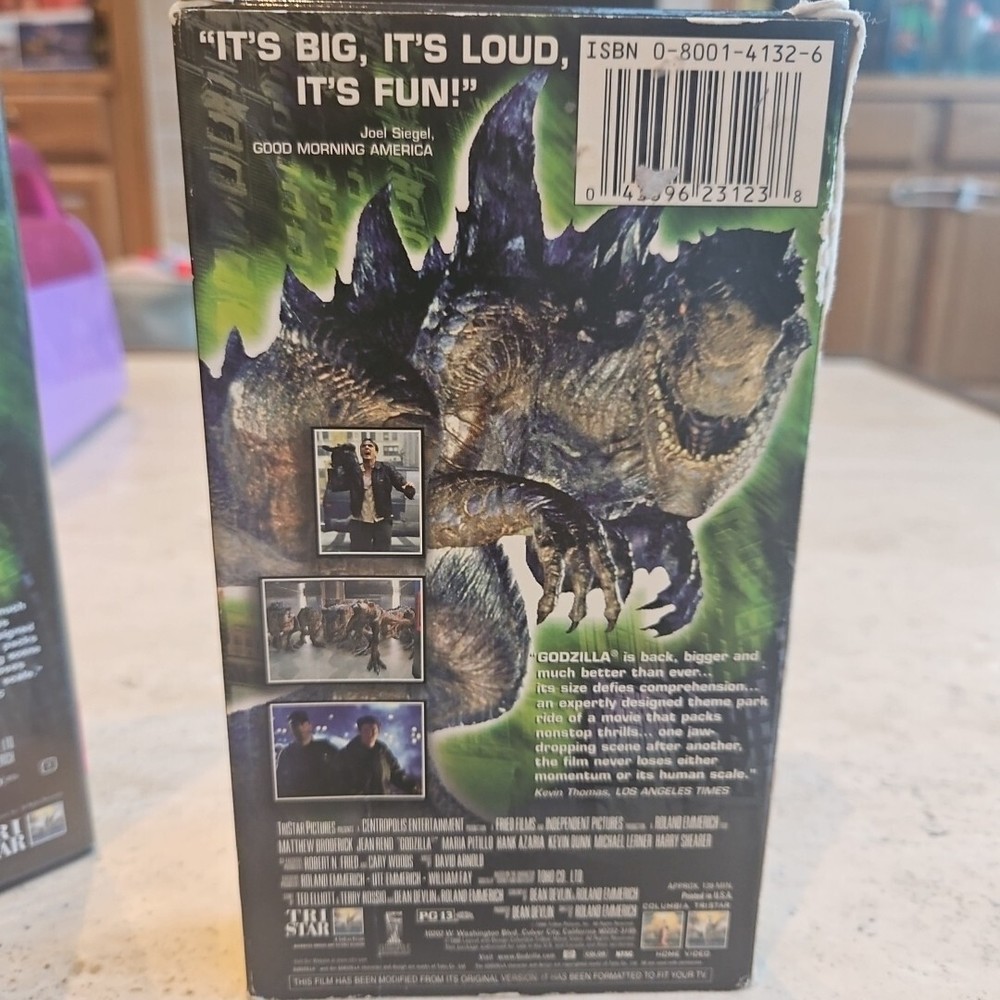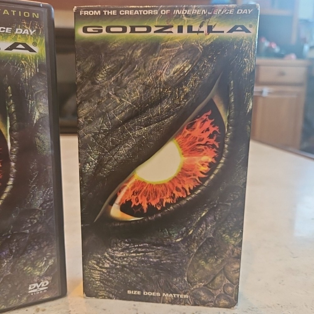 Experience the thrill of the 1998 blockbuster hit "Godzilla" on both DVD and VHS. Directed by Roland Emmerich, this sci-fi and fantasy film stars Maria Pitillo, Jean Reno, and Matthew Broderick. Rated PG-13, this movie is perfect for those who love monster movies. This VHS tape is in the NTSC signal standard and falls under the "Movies & TV" category. The DVD and VHS combo pack is a must-have for any movie collector. Get ready to witness the destruction and chaos caused by the iconic Godzilla.