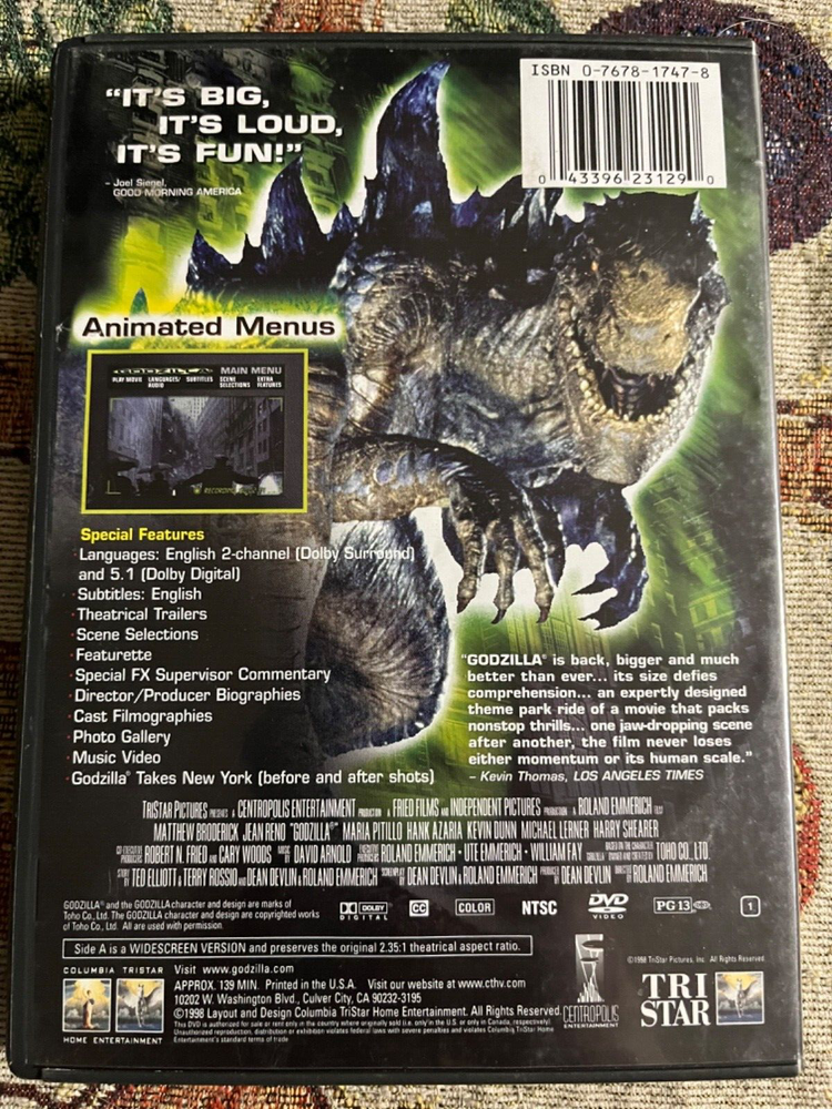 Get ready to witness the legendary monster in action with the Godzilla DVD. This thrilling movie is sure to keep you on the edge of your seat as Godzilla battles against other monstrous creatures, wreaking havoc on cities across the world. This DVD format of the movie is perfect for those who wish to relive the thrilling experience of watching the King of the Monsters on the big screen. With stunning visuals and heart-pumping action, this DVD is a must-have for any movie lover's collection. Don't miss out on the chance to own this iconic movie and add it to your collection today.