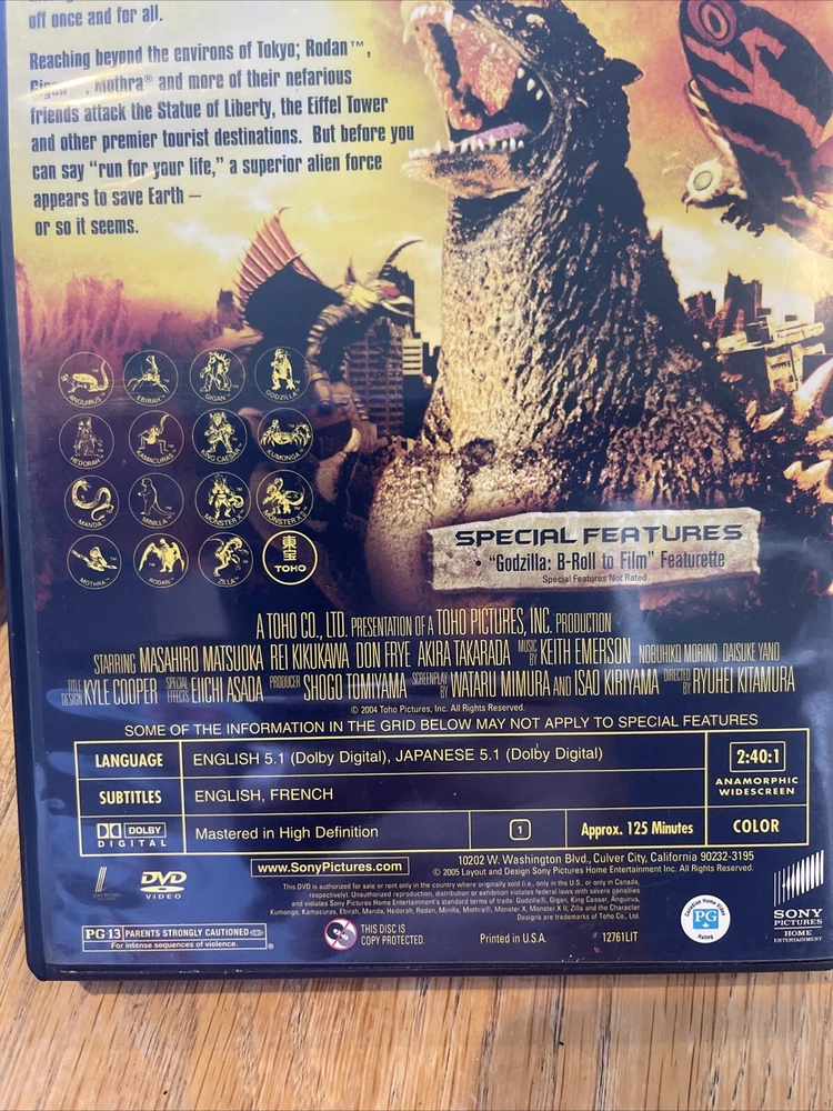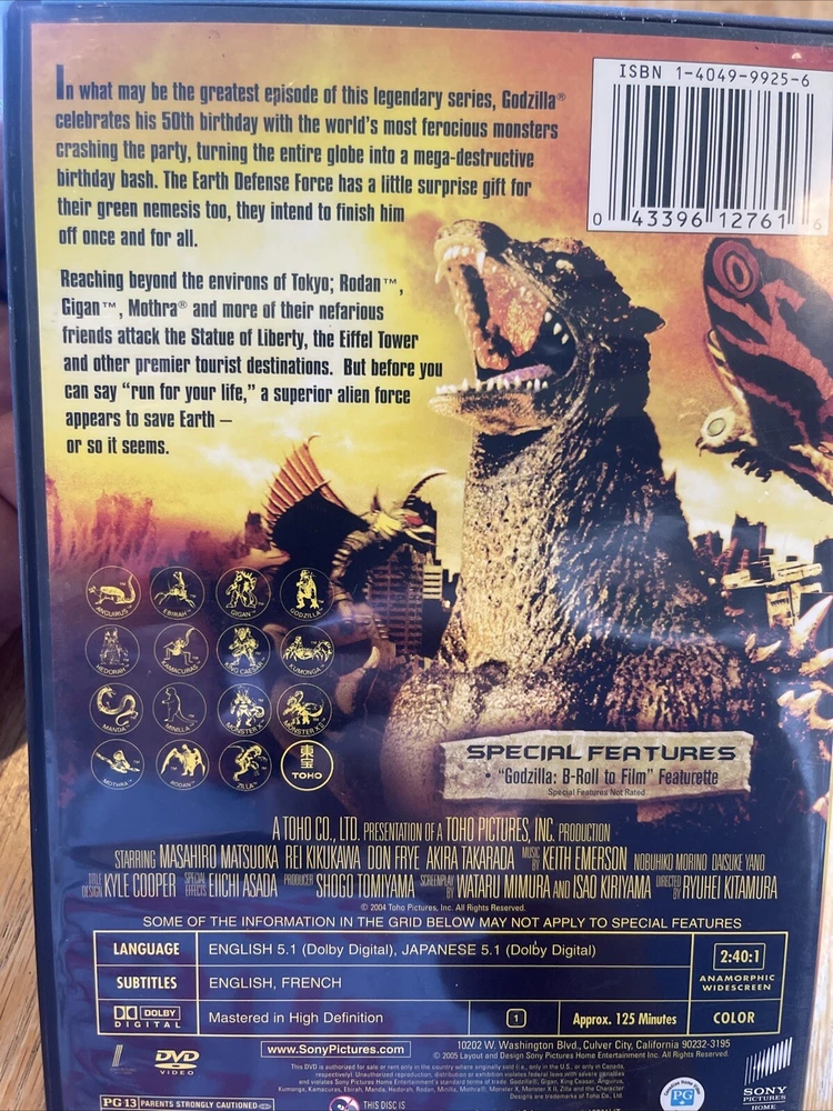 Get ready for an epic showdown with Godzilla: Final Wars! This DVD features the ultimate battle between good and evil, with Kazuki Kitamura, Masuhiro Matsuoka, and Rei Kikukawa. Directed by Ryuhei Kitamura, this cult film is a must-watch for fans of Japanese cinema and sci-fi & fantasy genres. Celebrate the 50th anniversary of Godzilla with this anniversary edition DVD, complete with widescreen format and subtitles. With a G rating, this movie is suitable for all ages and is perfect for Christmas gifts, birthdays, or any occasion. Don't miss out on the chance to own this classic piece of cinema history.