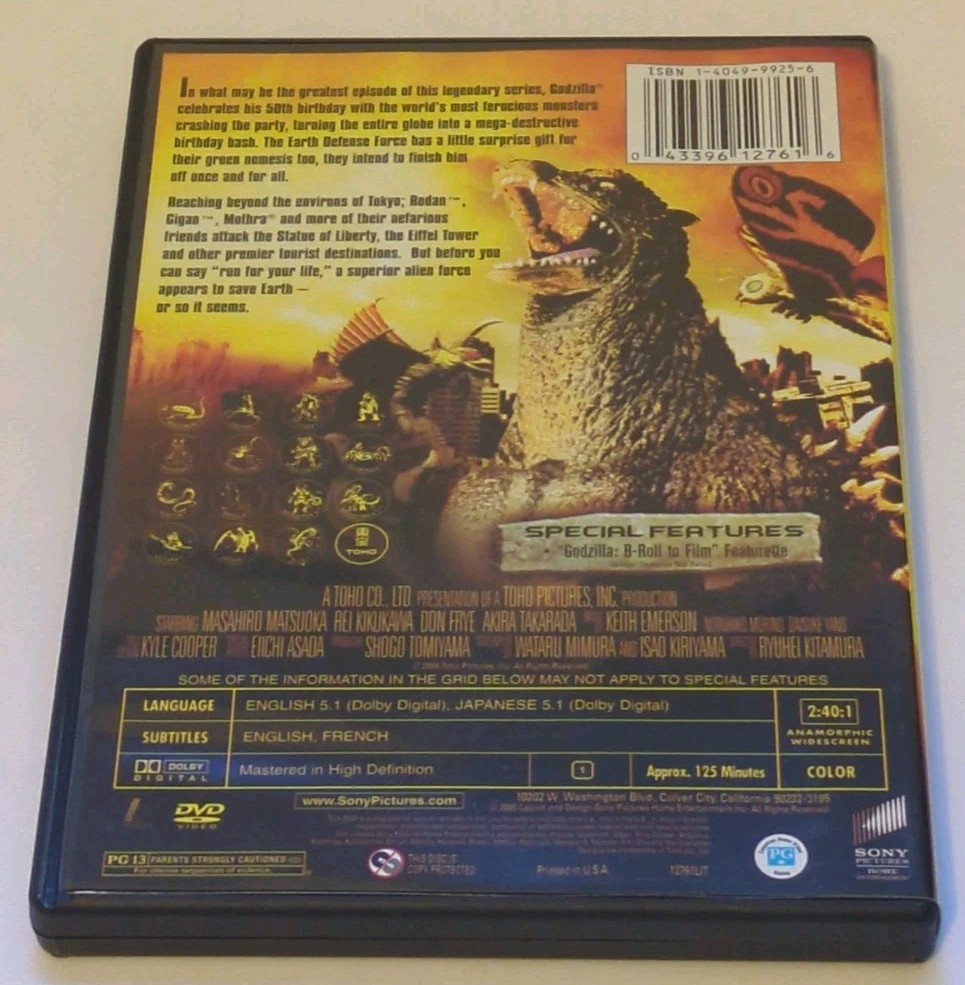 The product is the "Godzilla Final Wars" DVD, a special edition released in 2005 to celebrate the 50th anniversary of TOHO's Kaiju monsters. Directed by Ryuhei Kitamura, the film stars Kazuki Kitamura, Masuhiro Matsuoka, and Rei Kikukawa in a sci-fi and fantasy genre. This action-packed movie features Godzilla facing off against various monsters in a thrilling battle for supremacy, making it a must-have for fans of the iconic creature. Please see pictures and questions are welcome WILL ONLY SELL AND SHIP WITHIN THE UNITED STATES.