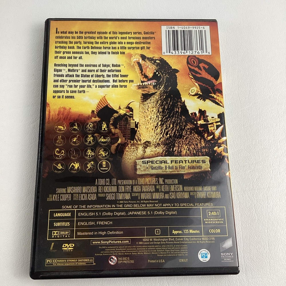 IN GOOD PRE-OWNED CONDITION FROM: SONY RELEASED IN: 2005 SERIES: GODZILLA INCLUDES: FINAL WARS DVD RATED: PG-13 THANKS FOR LOOKING PLEASE EMAIL WITH ANY QUESTIONS!!