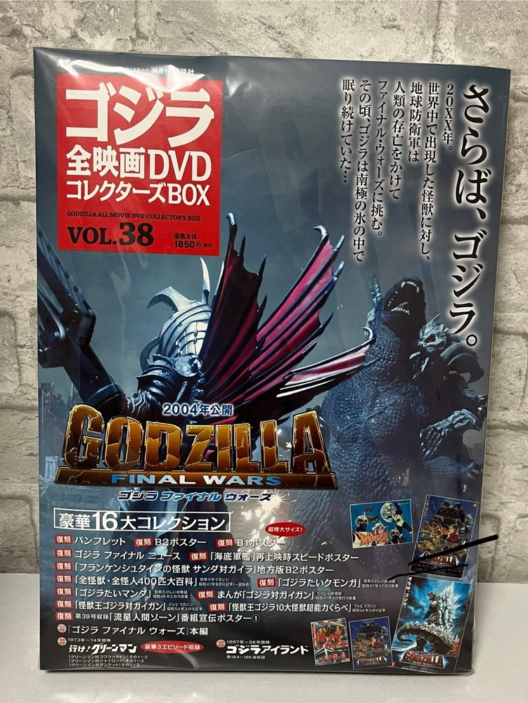 This is the official Godzilla Final Wars DVD Collector’s Box Vol.38 – a Japan-only collector’s set commemorating the epic 2004 film “Godzilla: Final Wars”. 🐉 Includes: • The 2004 kaiju action film “Godzilla Final Wars” (Region 2, Japanese) • Deluxe extras: reprinted posters, artwork, press sheets, and Toho memorabilia • Special content featuring monsters like Gigan, Kaiser Ghidorah, Manda, and more! 📀 Condition: Very Good – Outer sleeve shows minor shelf wear. Disc is clean and fully playable. 🖼️ Also great for display – features bold retro artwork and posters! ✨ A rare Japan-exclusive item, perfect for kaiju fans, collectors, and anyone who loves Godzilla’s legacy!