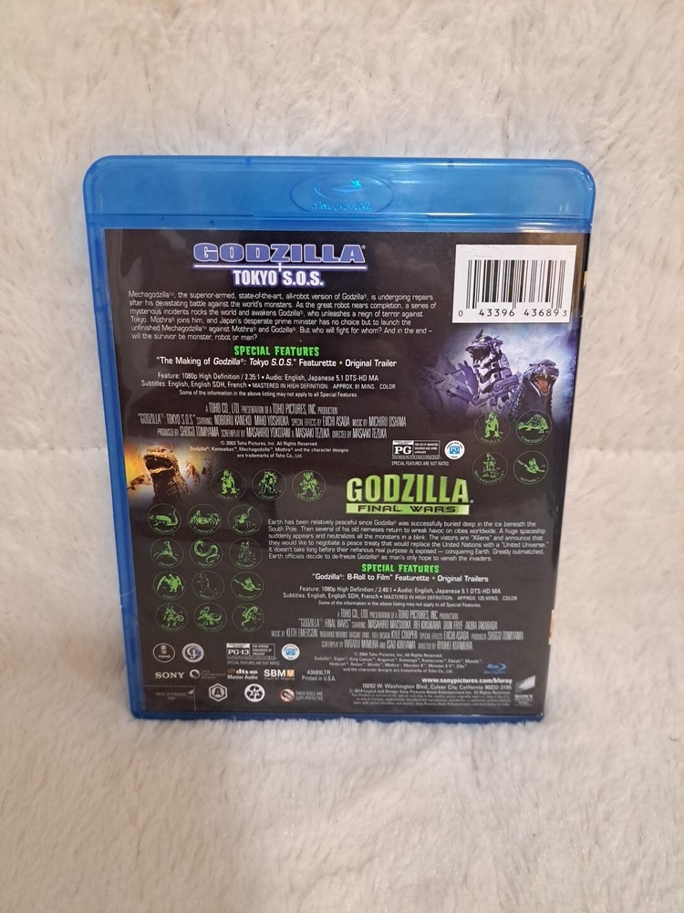 Experience the ultimate horror monster battle with this Toho Godzilla collection on Blu-ray. The double feature includes Godzilla Final Wars and Godzilla Tokyo S.O.S., both released in 2004 by Sony Pictures. Get ready to witness the destruction of Tokyo and the battle between Godzilla and his enemies. This item is perfect for collectors and fans of the horror genre. In excellent condition! Visit and follow the store for more great finds!!