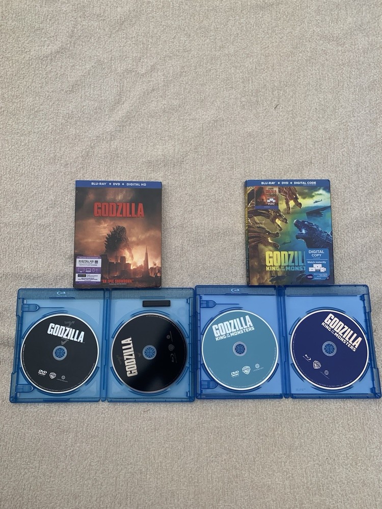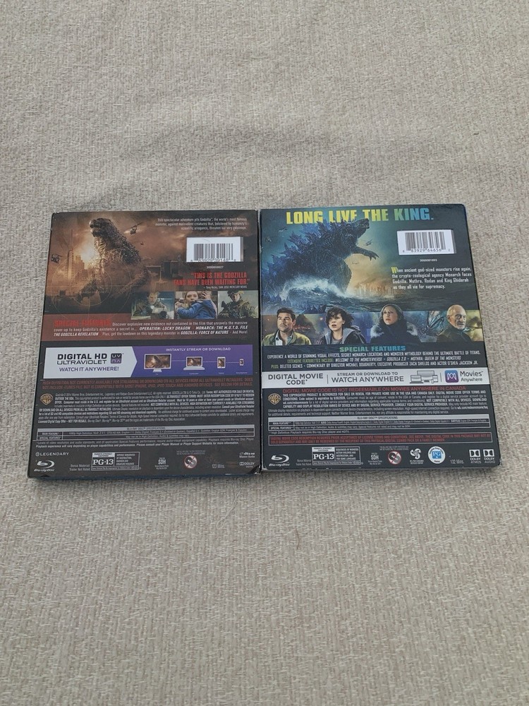 All flaws shown in pictures. Discs are really clean. No Digital code to none! King of monsters has some damage to front slip cover