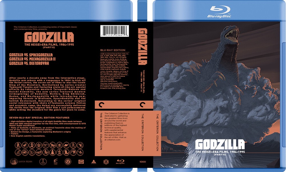 You're buying Custom Blu-ray Covers W/ Blu-ray Cases of Godzilla Heisei-era What is included: You will get two custom Godzilla Heisei-era Blu-ray covers placed inside a new empty (4-Disc & 3 Disc) blu-ray case. ( No Discs are included ) Spine Measurements are 22MM for the Cases / Covers Shipping is now included in all orders Thanks!