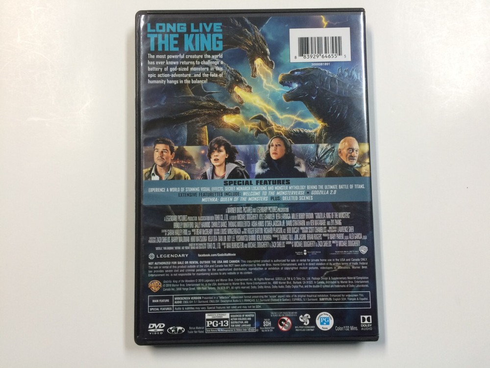 Godzilla King Of Monsters (2019) 2 Disc Set. DVD. Case shows minimal handling/shelf wear. DVD disc is like new or close to it....