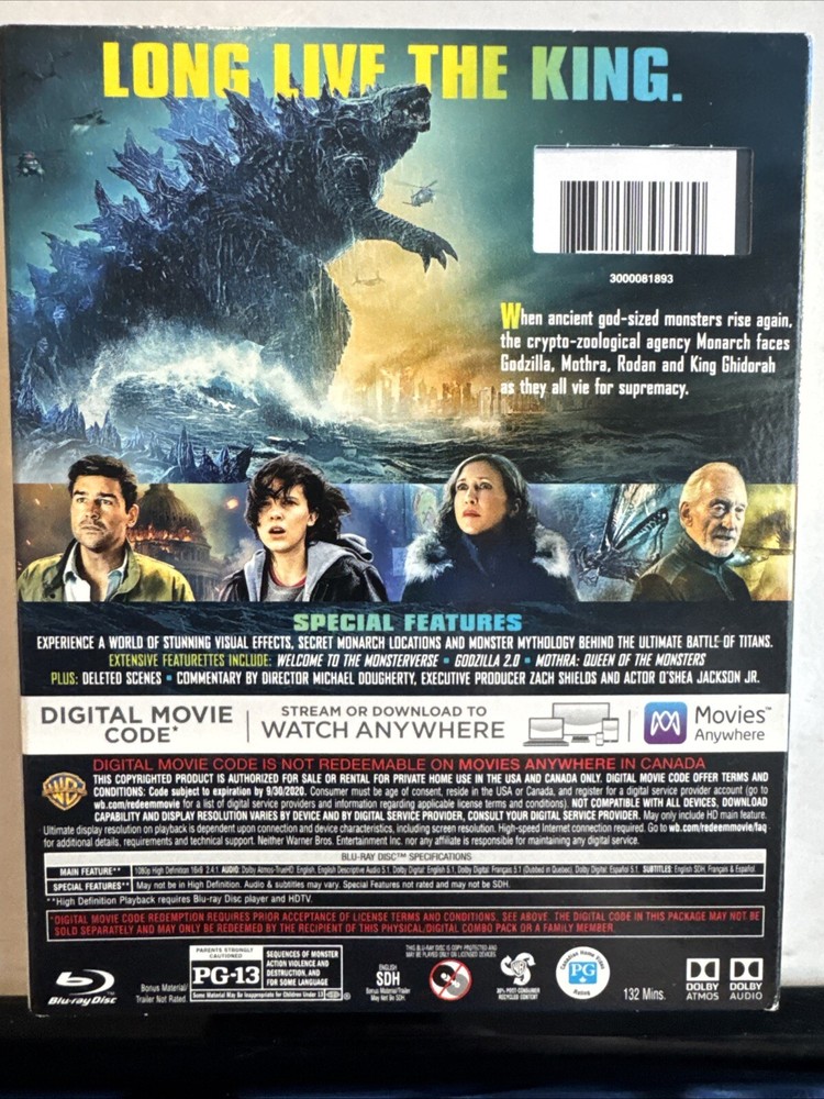 Immerse yourself in the epic battle between iconic monsters with "Godzilla: King Of The Monsters" on Blu-ray. This rare out-of-print edition includes a slipcover, adding to the collectability of this must-have movie for any fan of the franchise. Enjoy stunning visual effects and thrilling action sequences in the comfort of your own home with this sought-after Blu-ray release.