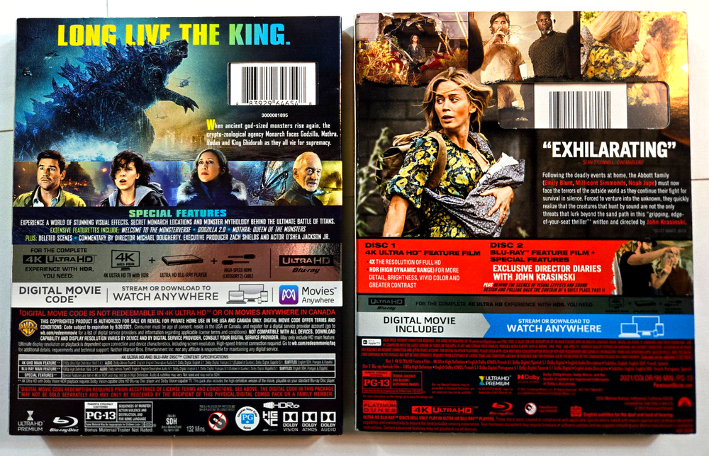 Own: TWO SCI-FI CREATURE FEATURES! Godzilla: King of the Monsters 4K 4K + Blu-ray + Slip Cover (Digital Copy Expired) & A Quiet Place Part II 4K 4K + Blu-ray + Digital Copy + Slip Cover Factory Sealed U.S. Releases Ships with a tracking number (in the U.S)
