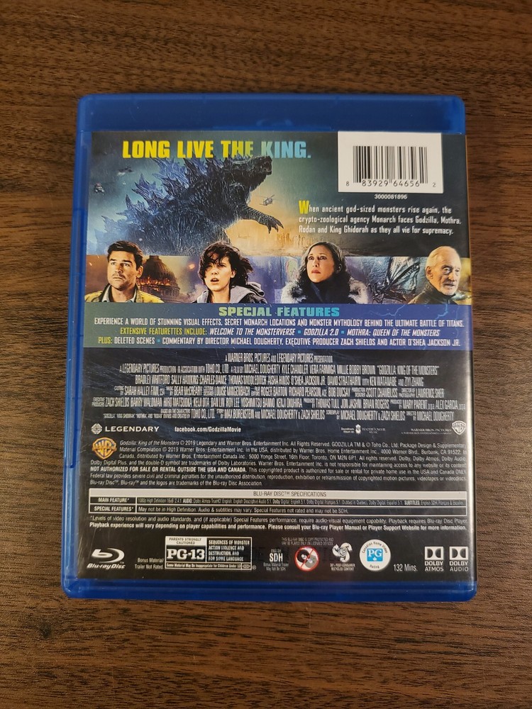 Godzilla: King of the Monsters (Blu-Ray/DVD, Aug 2019, 2 Discs) Good minor marks, no insert...