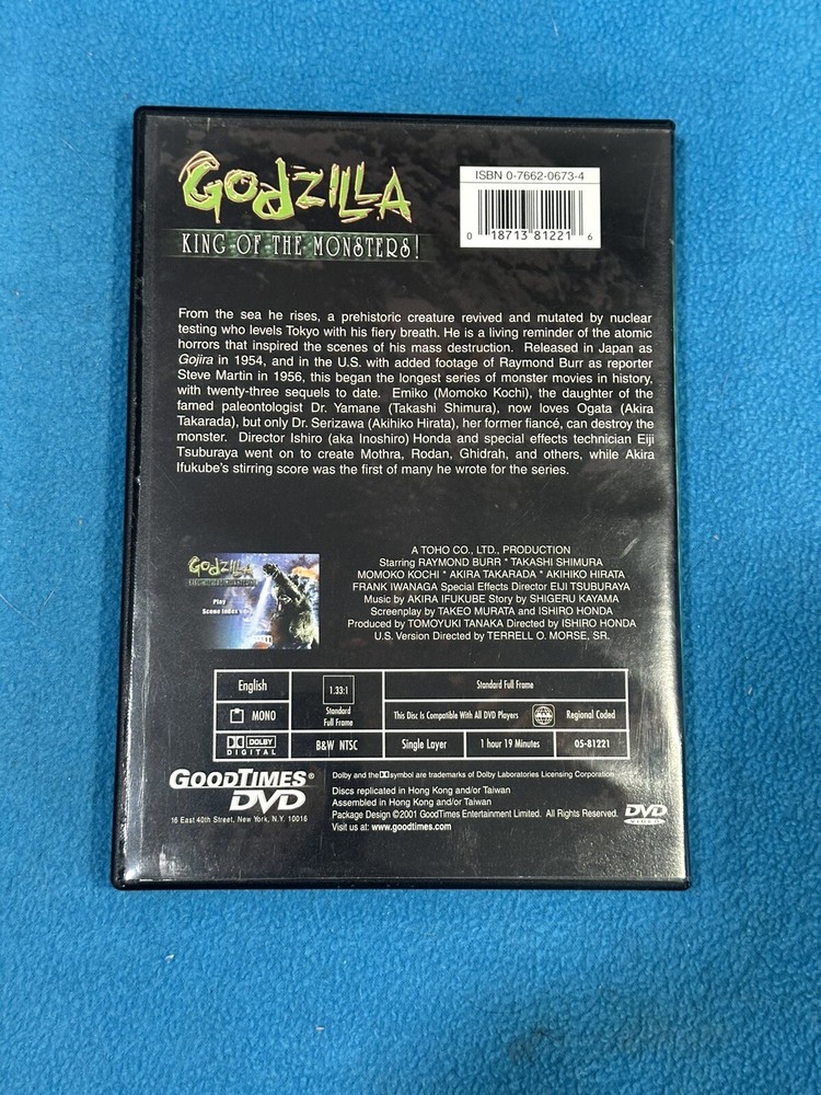 Selling off some of my Godzilla duplicates I have in my collection. Godzilla King of the Monsters DVD Disc is in excellent condition.